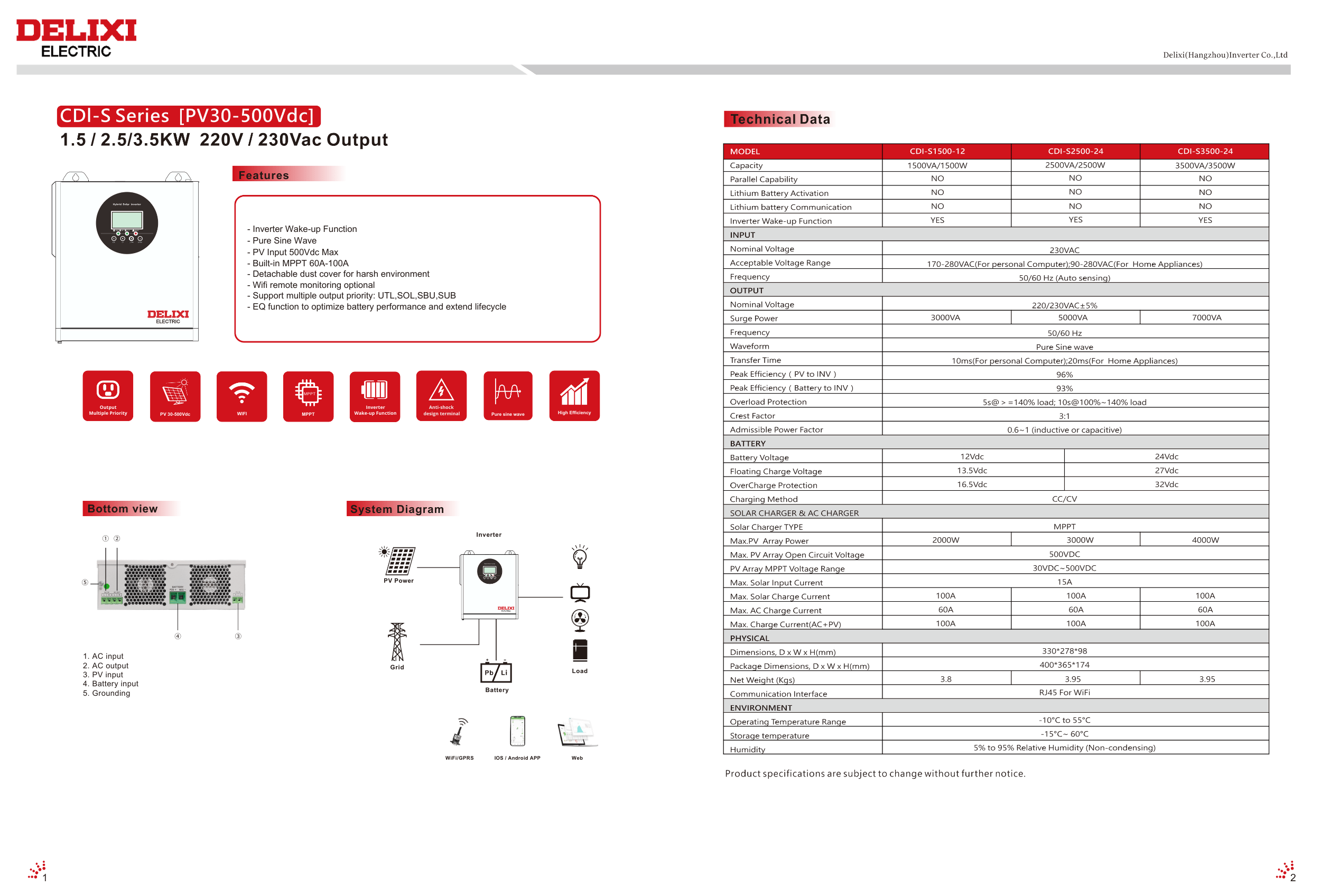 Delixi 3.5kw Hybrid Solar Inverter 24V DC 220V AC Delixi CDI S Series